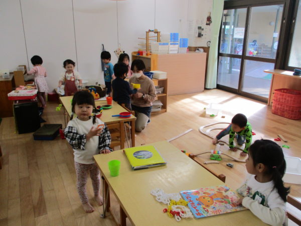 0・1・2歳児さんのクラスでは慣らし保育の保護者の方も。