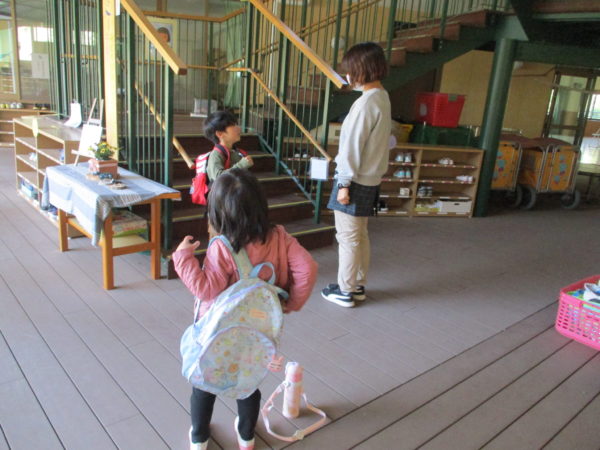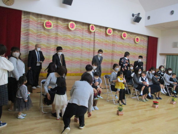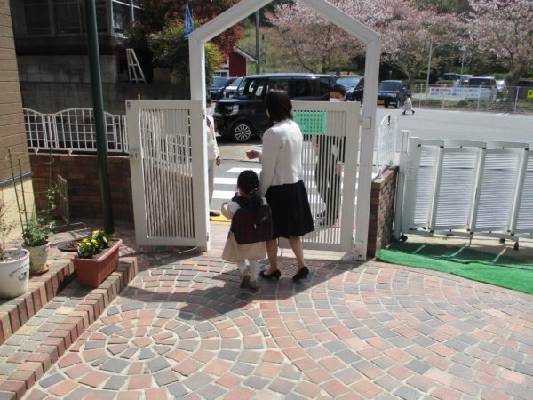 新入児さんはもちろん、進級児さんの保護者の方も連れて行く部屋も違えば勝手も違うので、大人も子どもも右往左往な朝の風景でした。
