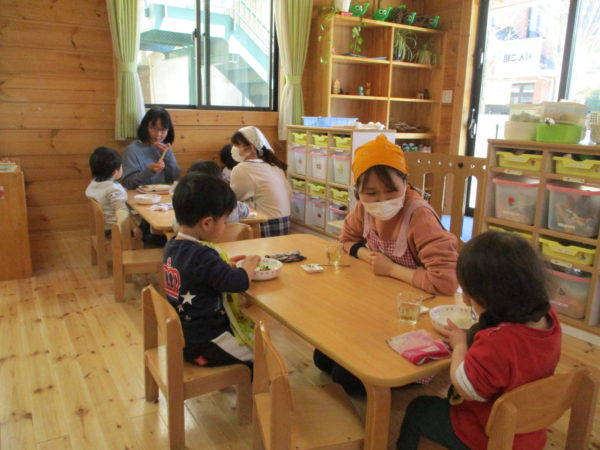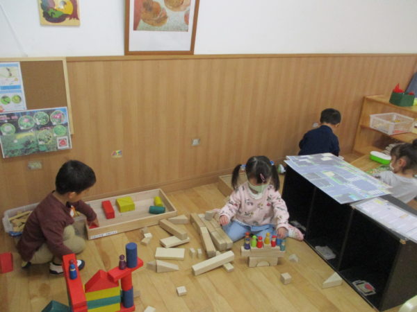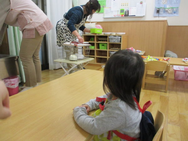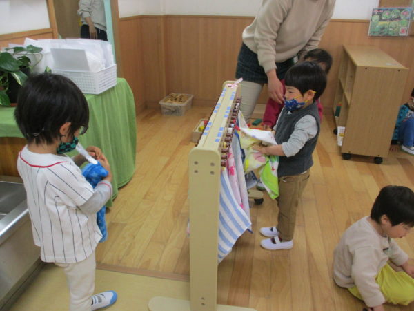 新年長さんも、第一陣は「これはどこにおけばいいの?」「どうすればいいの?」とソワソワわいわいでしたが、その子たちに手順を教えると、次から来る子には子ども同士で教え合っていました。