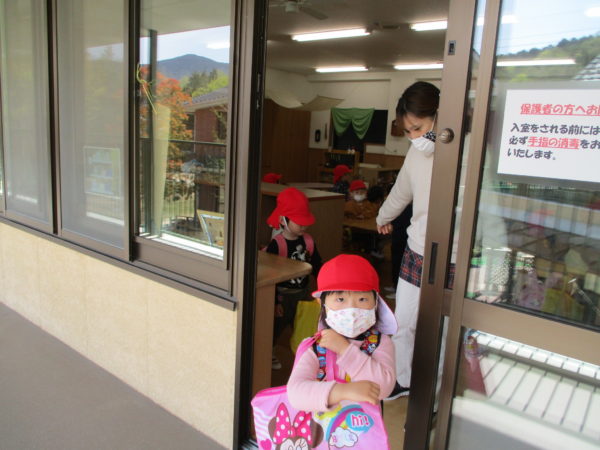 急いで仕事に向かうお母さんの背中を見つめながらも、「カバン背負える?お部屋に自分でいける?」と聞くと、ゆっくりしっかり頷いてくれました。
