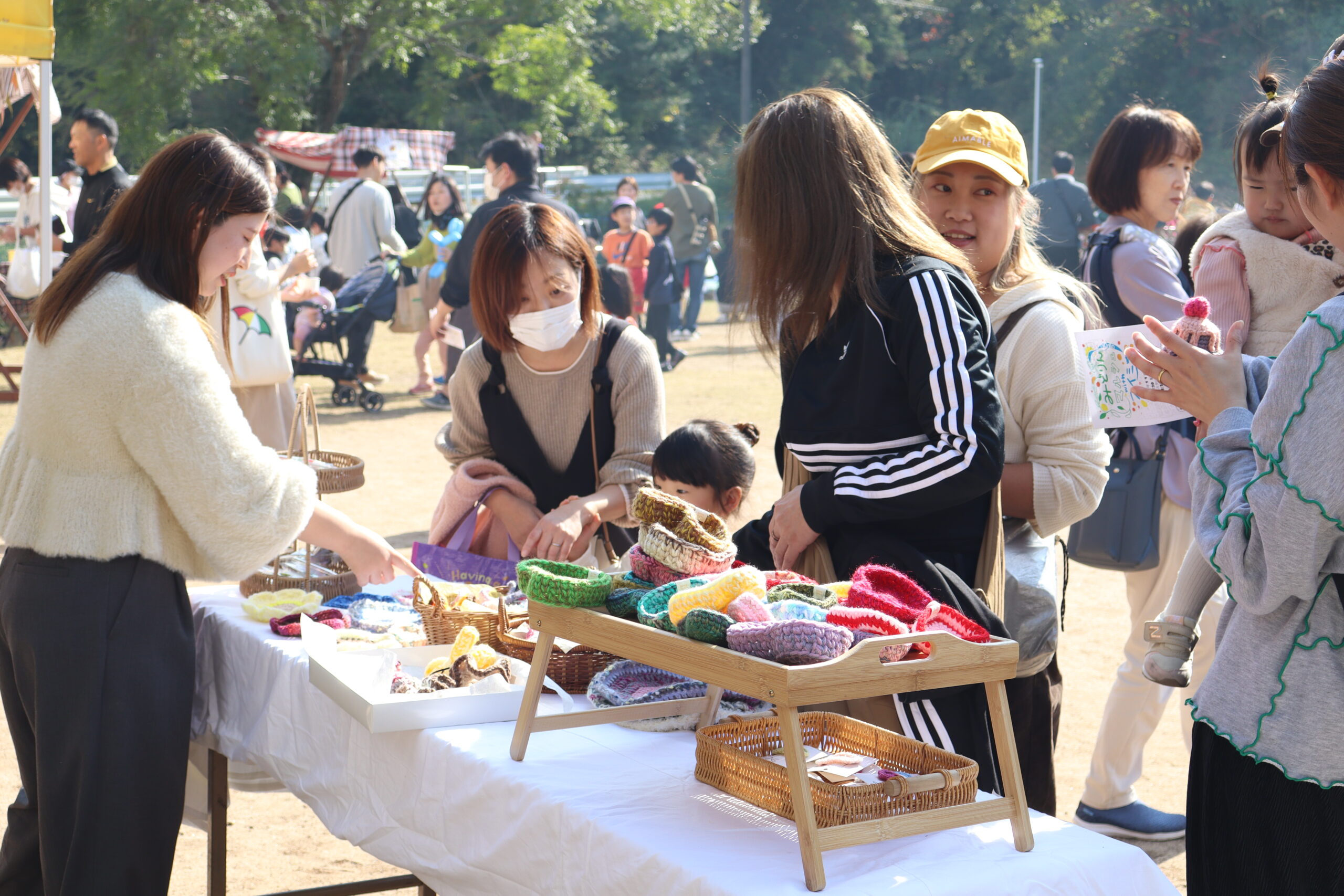 先生が作った手作り小物のお店や、