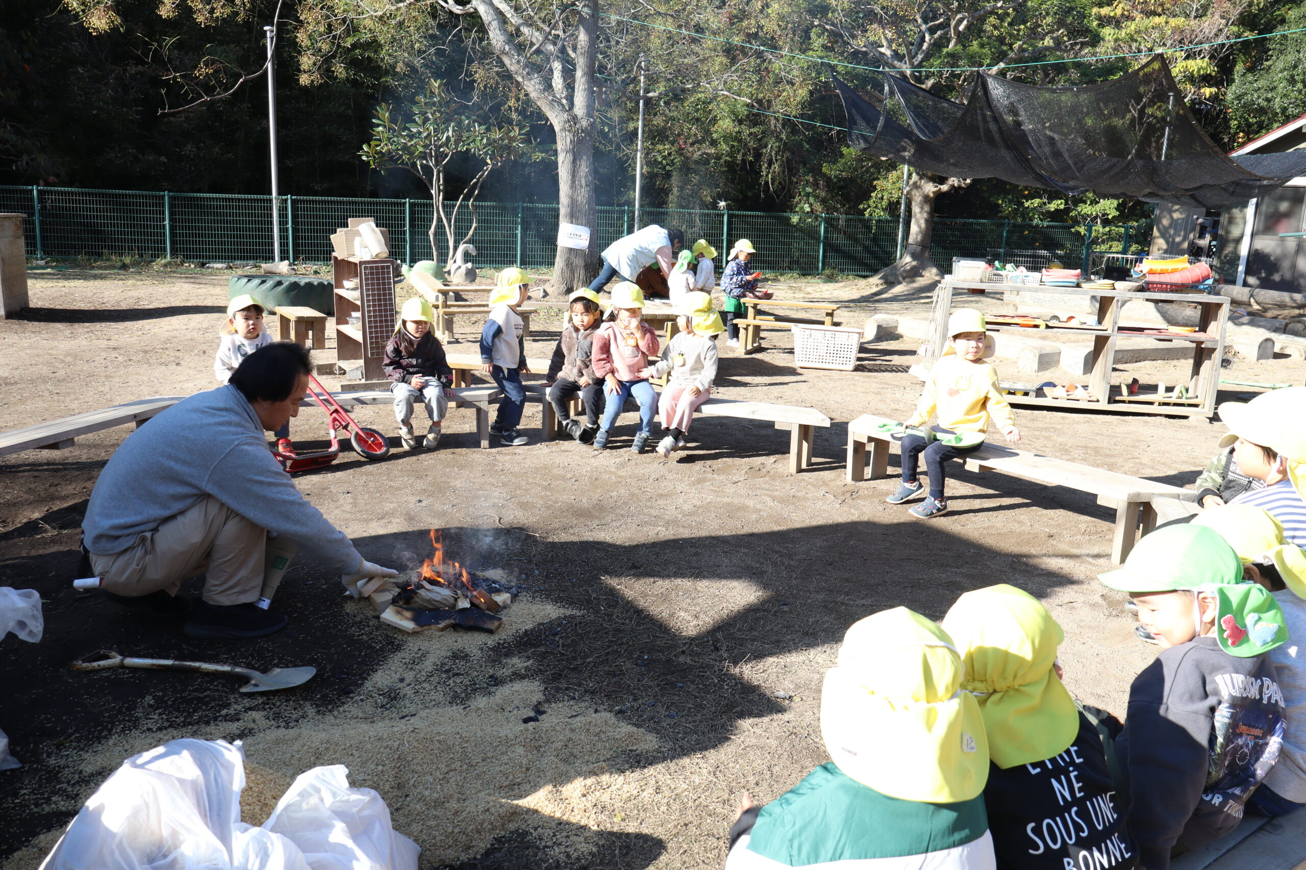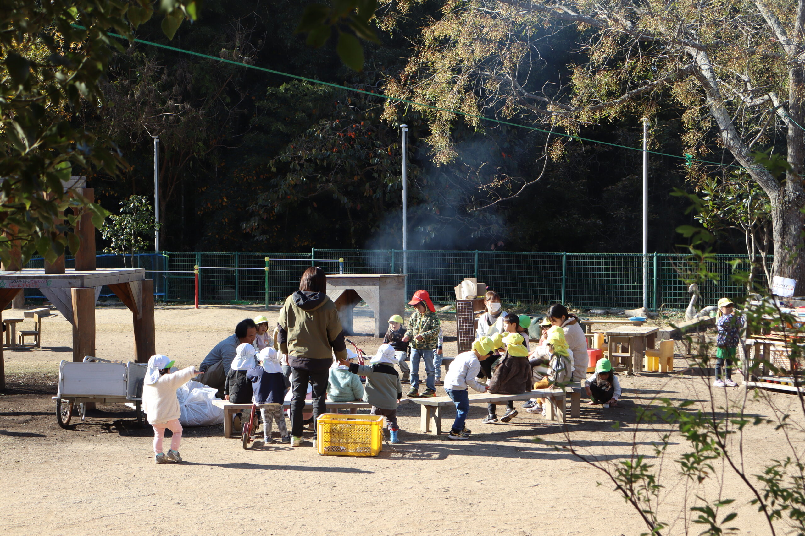 おや、園庭の真ん中から、なにやらケムリが・・・