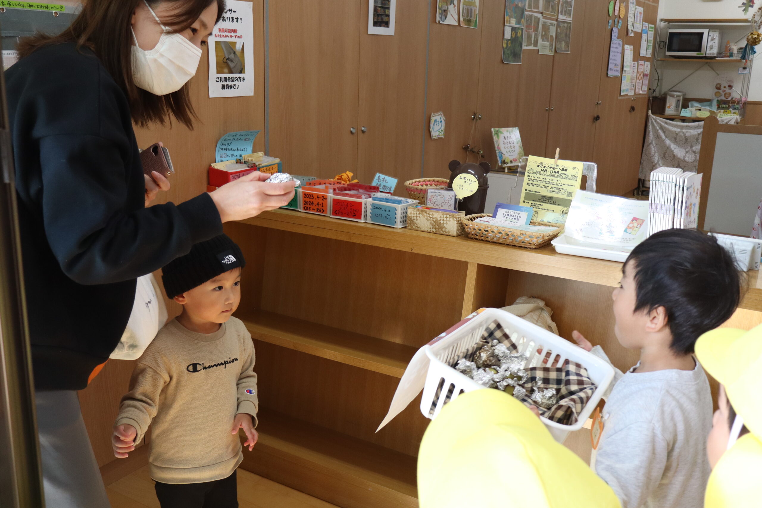 それでも年少さんたちは園内を練り歩き「やきいもいかがですかー」としっかりなりきって売り歩き(配り歩き?)をしてくれました。