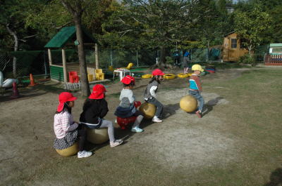 | きょうも“小春日和”です。風もなく穏やかな晩秋の一日ですね。いかがお過ごしですか、とゆっくりご機嫌伺いでもしたいのですが、きょうは業者さんから展示会に来て下さい、といわれているし、月末の仕事も片付けておきたいし・・・年末も近いし・・・、なかなかこころは穏やかにはなりません。11/21 (写真はクラスで遊んでいる年少さん。クラスで集団遊びをすることは、友だちを意識したり、クラスのまとまりを高めるためにも大切な活動です。11/19撮影) |