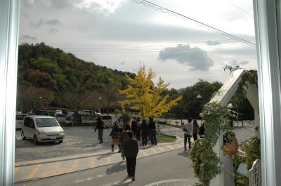 | けさは、空気が冷たい、と感じましたね。きょうは年少さんの参観でした。一学年だけだったので駐車場も混むこともありませんでした。年少さんなので、保護者の方々も、どんなのかな?と心配されていたのではないかと思います。無事なんとか済みました。写真は参観が終わって帰られるところです。駐車場のイチョウの葉が、この数日で急に黄色に変わりました。11/2 |
