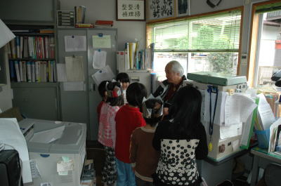 | やっとパソコンが開きました。朝、10時にディスプレーがチェックモードの英語ばかりになって9時間。待ちました(以前は、すぐ電源を入り切りしたりして、動かなくなりましたからね)。パソコンが動かないと事務仕事はストップです。でも、いつものように忙しい一日ではありました。写真は午後、帰る前、事務所に、おちゃくださぁ~い、と言ってきて、お茶を飲んでいる子どもたち。きょうは、あつかったのかナ。11/24 |